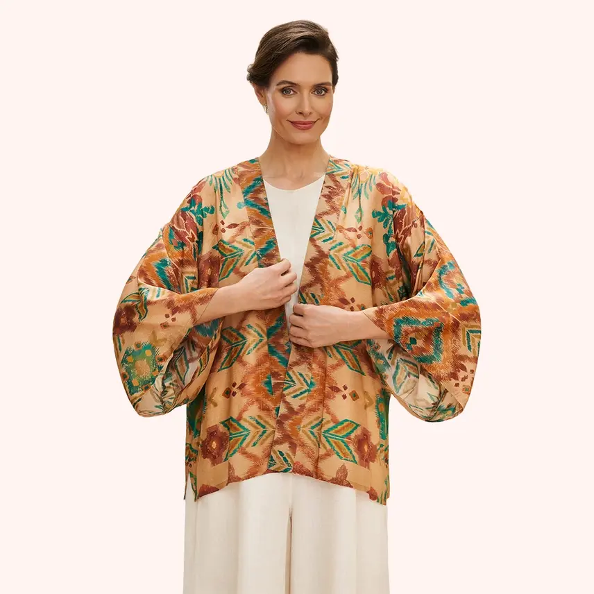 Powder Design Warm Cream Ikat Kimono Jacket