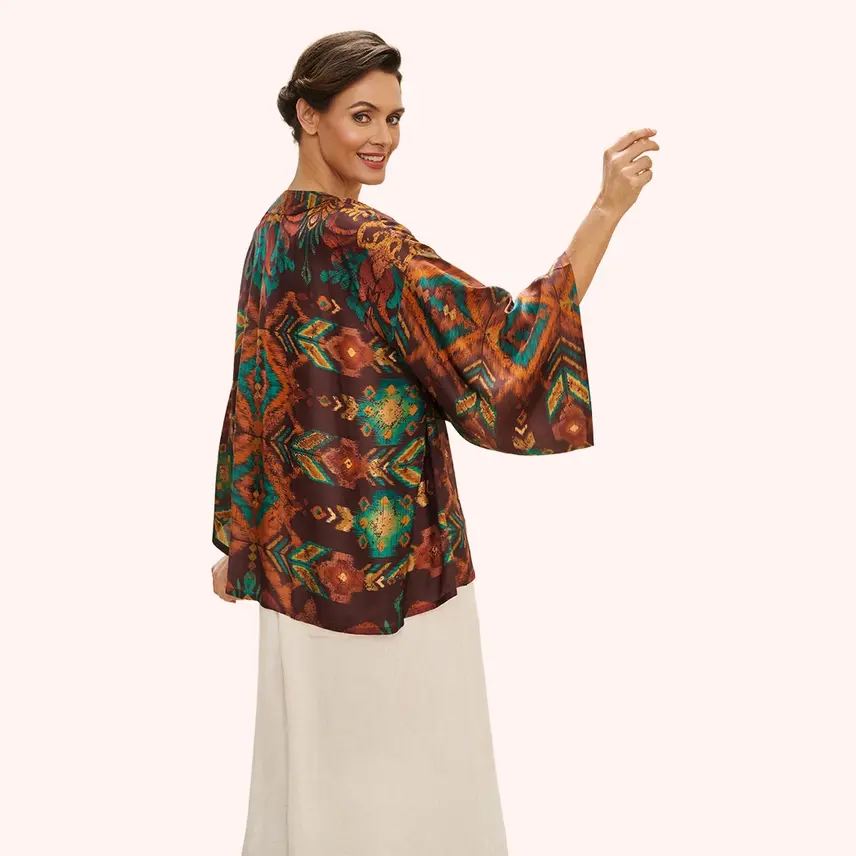 Powder Design Chocolate Ikat Kimono Jacket